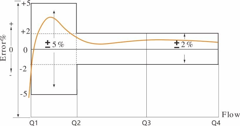 Maximum permissibilis error ad superius fluunt rate zonam (mpeμ) | ± II% ad aquam habens temperatus ≤30 ℃ | ||||||||||||||